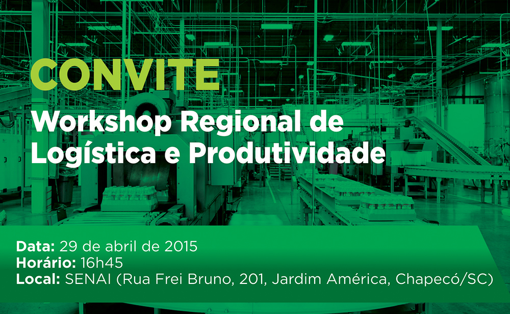 Florianópolis, 15.4.2015 – Chapecó sediará workshop regional de logística e produtividade no dia 29 de abril, às 16h45, na sede do SENAI (Rua Frei Bruno, 201, Bairro Jardim América). O evento é promovido pela Federação das Indústrias de Santa Catarina (FIESC), por meio da Câmara para Assuntos de Transporte e Logística da entidade e do Instituto SENAI de Tecnologia em Logística.
