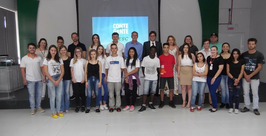 Florianópolis, 25.4.2018 – O SENAI de Concórdia, entidade da FIESC, recebeu nesta quarta-feira (25) jovens atendidos em serviços de acolhimento da região e que participarão do Programa Novos Caminhos. A iniciativa oferece capacitação profissional e encaminha os participantes para o mundo do trabalho. A aula inaugural foi acompanhada pelas jovens embaixadoras do Movimento Santa Catarina pela Educação, Ana Carolina Baretta e Lara Tozza Salante.