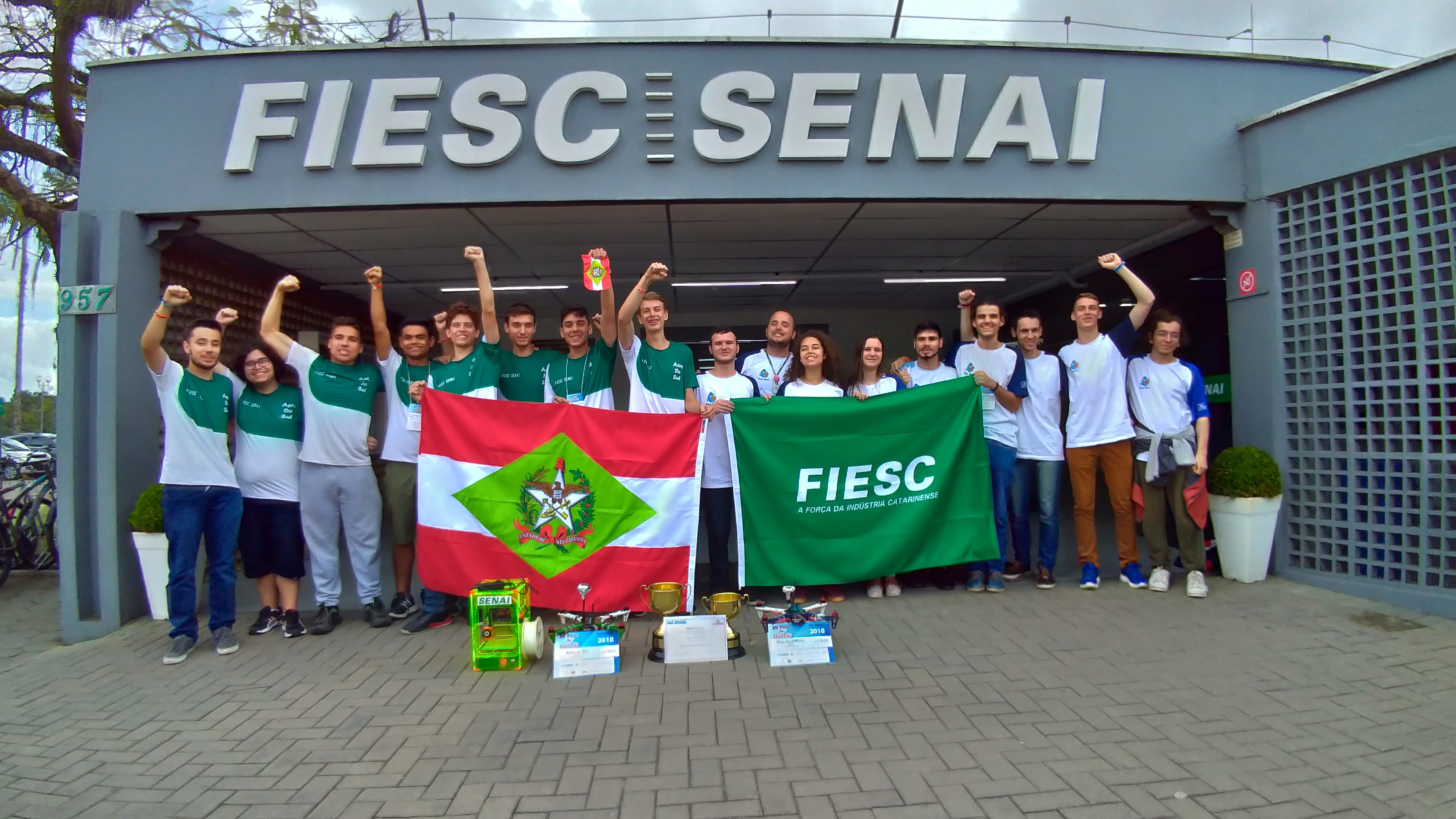 Florianópolis, 10.9.2018 – Equipes do SENAI de Joinville venceram a Competição Fórmula Drone 2018, realizada de 7 a 9 de setembro na Universidade Federal de Itajubá, Minas Gerais. A competição, em seu segundo ano, reuniu 39 equipes e 415 concorrentes de instituições de ensino técnico profissional de nível médio das cinco regiões do país. Os estudantes catarinenses conquistaram a primeira e a segunda colocação da prova.
