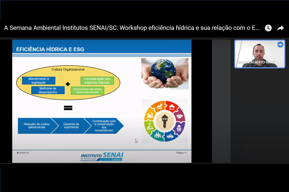 Por fim, Haas relata que o SENAI possui ações aplicadas dentro das empresas e que busca auxiliar na gestão de águas e efluentes líquidos, como análise e acompanhamento do cumprimento legal do uso da água por meio do atendimento a requisitos legais e ocorrência de sanções; prática de gestão através de programas voltados ao uso e consumo eficiente da água; retração da empresa referente a pesquisa e desenvolvimento; e envolvimento da empresa em programas com a cadeia de suprimentos e comunidade. "Outro tópico importante é a análise de desempenho, que é feita por meio de monitoramento do consumo de água e geração de efluentes, aplicação de técnicas que incentivam a redução do consumo e das cargas poluentes lançadas em corpos receptores”, finaliza.