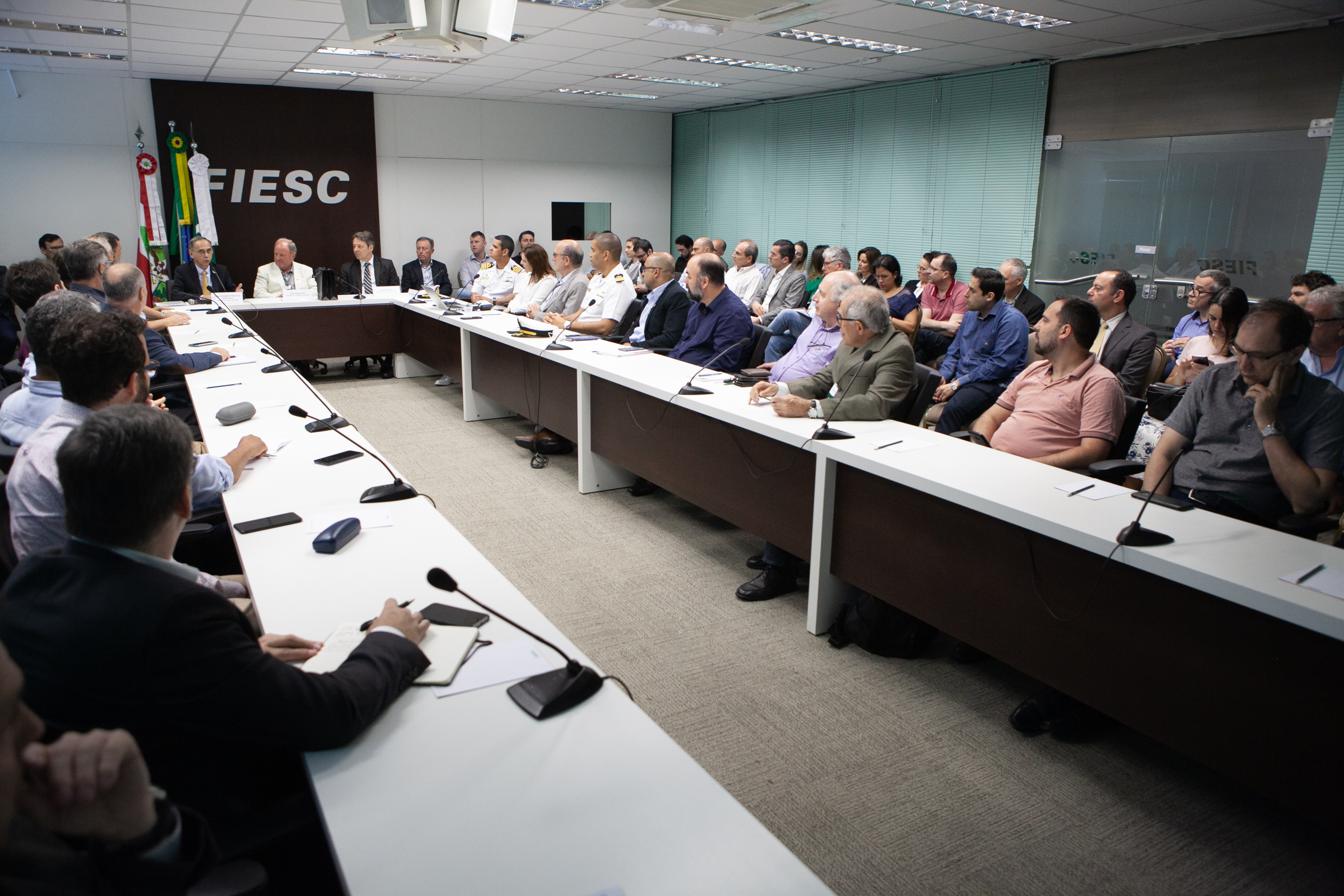 Florianópolis, 24.10.2019 - O Sistema Integrado de Monitoramento de Fronteiras (Sisfron), programa do Exército brasileiro para a proteção de 16,8 mil quilômetros de fronteiras, abre possibilidade para a indústria catarinense fornecer produtos e serviços. Em reunião do Comitê da Indústria de Defesa da FIESC (Comdefesa), nesta quinta-feira (24), em Florianópolis, o general de brigada R1, Sergio Luiz Goulart Duarte, explicou detalhes do programa para representantes de indústrias e instituições de ensino do estado. Entre os produtos destacam-se óculos de visão noturna, radares, rádio de campanha, embarcações, satélites, veículos, software, câmeras de longo alcance, drones, soluções em energias renováveis e obras de engenharia.