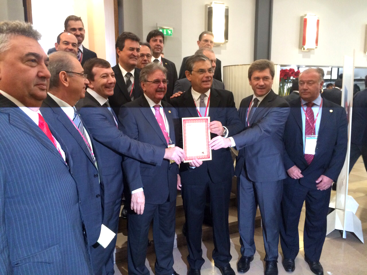 Florianópolis, 28.05.2015 – A Federação das Indústrias de Santa Catarina (FIESC) participou da cerimônia de entrega do Certificado de Zona Livre de Peste Suína Clássica, concedido pela Organização Mundial de Saúde Animal (OIE), nesta quinta-feira (28), em Paris. O diretor da FIESC, Carlos Henrique Ramos Fonseca, acompanhou a solenidade em que o vice-governador do Estado, Eduardo Moreira, e o governador do Rio Grande do Sul, José Sartori, receberam o documento. Santa Catarina e o Rio Grande foram os únicos Estados brasileiros certificados.