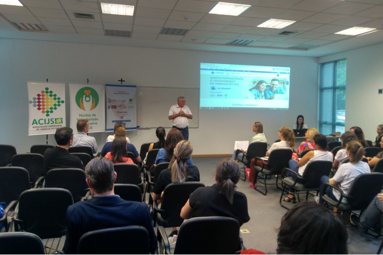 Para viabilizar o projeto, o Núcleo de Voluntariado Corporativo da ACIJS e a FIESC uniram expertises e o conhecimento técnico, somando a capacidade de mobilização que torna Jaraguá do Sul referência no estado, a recursos de digitalização e de conectividade disponíveis, integrando a plataforma ao programa estadual Eu Voluntário.