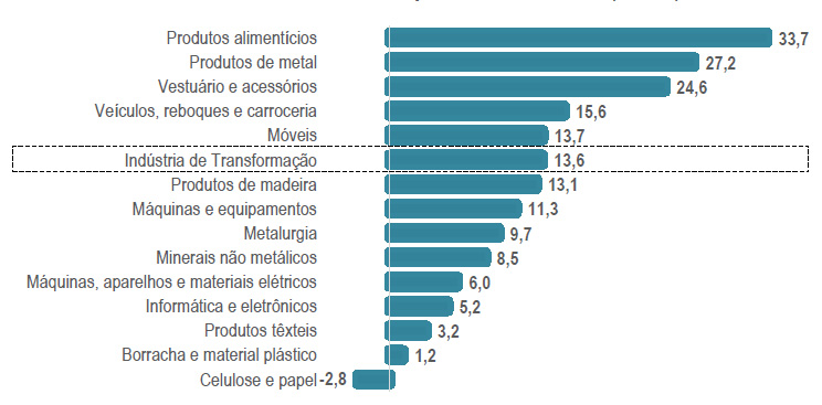Dados do Observatório FIESC destacam que a alta no faturamento deve ser vista com cautela. Alguns setores registraram crescimento, contudo, o desempenho da produção não segue o mesmo ritmo. É o caso, por exemplo, de alimentos, que cresceu 33% de janeiro a agosto, mas a produção no acumulado do ano registra queda de 1,8%. As vendas de agosto em relação ao mesmo mês em 2017 registraram alta de 17,1%, com avanço em 13 das 14 atividades consultadas, na série livre de influências sazonais. Alimentos, produtos de metal e veículos e carrocerias puxaram positivamente o desempenho.