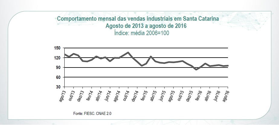 Florianópolis, 7.10.2016 – As vendas da indústria catarinense no acumulado do ano até agosto registraram queda de 10,6% em relação ao mesmo período no ano anterior. Dos 16 setores pesquisados no período 15 tiveram retração no faturamento. As exportações do Estado de janeiro a setembro em relação ao mesmo período em 2015 diminuíram 5% para US$ 5,64 bilhões. No mesmo período, as importações retraíram 25% para US$ 7,57 bilhões. As informações foram divulgadas pela Federação das Indústrias de Santa Catarina (FIESC), nesta sexta-feira (7).
